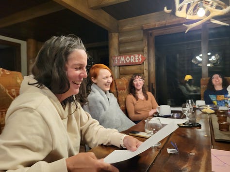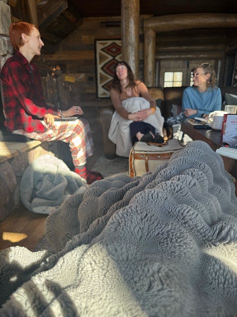 For a few days, everyone allowed me to tell the truth about what I was experiencing. I was offered absolute solidarity rather than pity. I was still treated as wholly myself, wholly welcome. In a frigid cabin that some Texan owners really probably needed to winterize, we kept each other warm with stories, with laughter, with cups of tea, with a roaring fireplace, with conversations that startled me by how effortless they felt. It was like being cocooned, for just a little while, in the same kind of radical love that I now recognize in a few special pockets in my life.