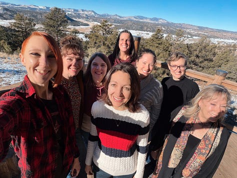 In January, I had yet again hit a low where my brain suggested on loop that I should take that old fire escape out of the conflagration of my retraumatized brain, conclude my own story. Tiredly, repeatedly, I said no. Instead, I packed a duffel bag and headed into the mountains for a weekend with my writer’s group, a community of women who have allowed me to bask in their creativity and their soul-full living for the past two years.